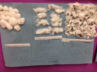 One of my favorite supplementary weather activities came from my second grade buddy Amy, who is now in a new district. I miss her, and I always think of her when I do this lesson. After learning about cirrus, stratus, and cumulus clouds we recreate them. We take blue construction paper to represent the sky, and then students use cotton balls to represent the three different types of clouds. This activity really helps students learn the difference between cirrus, stratus, and cumulus clouds.